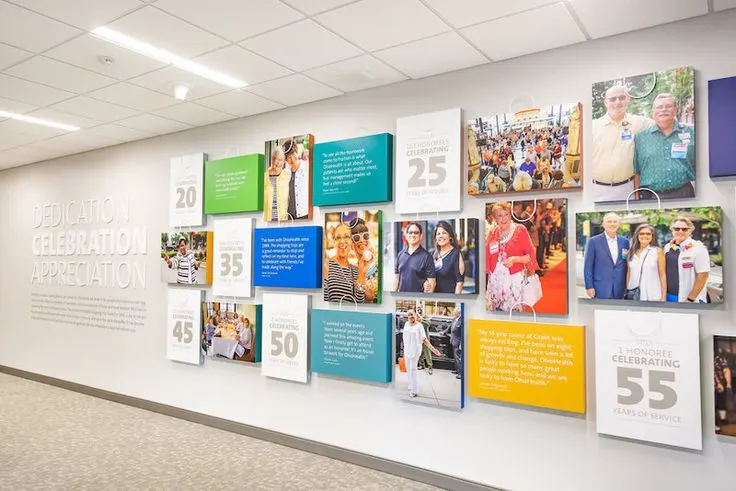 Displaying motivational quotes, slogans or your company’s core values with custom typography or 3D letters on the walls adds a meaningful layer to your workspace. These walls remind employees of the company’s mission and inspire the team daily, keeping the motivation high and ultimately contributing to the business’s growth. You can position them in highly-visible areas like hallways, conference rooms, or even the office’s entrance to make a strong visual impact.